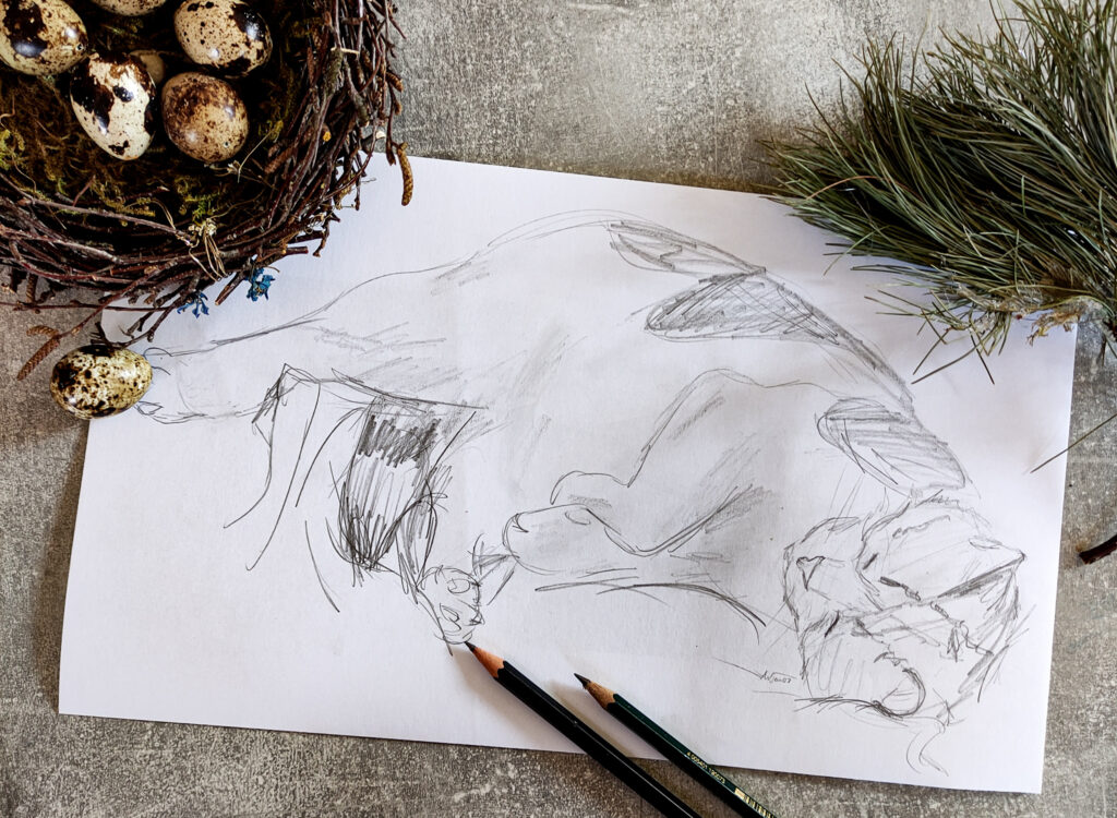 Besonders gut üben kannst du das Skizzieren an lebenden Objekten. Da diese sich bewegen und ihre Lage verändern können, bist gezwungen, das Objekt schnell zu erfassen und zu Papier zu bringen. Dabei schulst du dein Auge für das Gesamtobjekt und verlierst dich nicht zu schnell in Details.